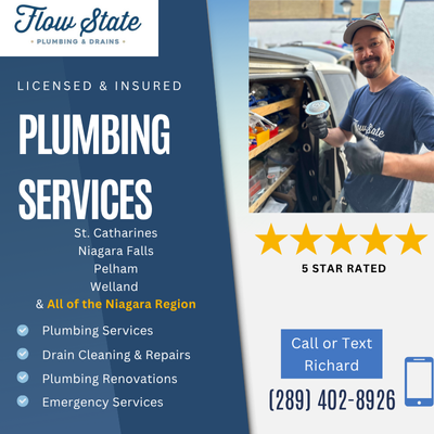 Learn more at flowstateplumbers.ca – your dependable Niagara-based plumbing experts. Call or Text Richard at 289-402-8926
