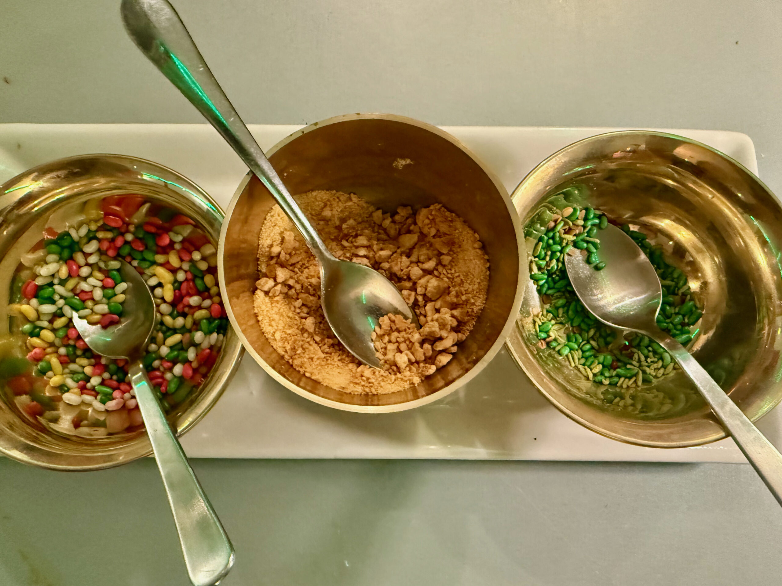 To end the meal, we were treated to three varieties of Mukhwas, a traditional Indian after-meal snack and digestive, adding a refreshing and authentic touch to the experience.