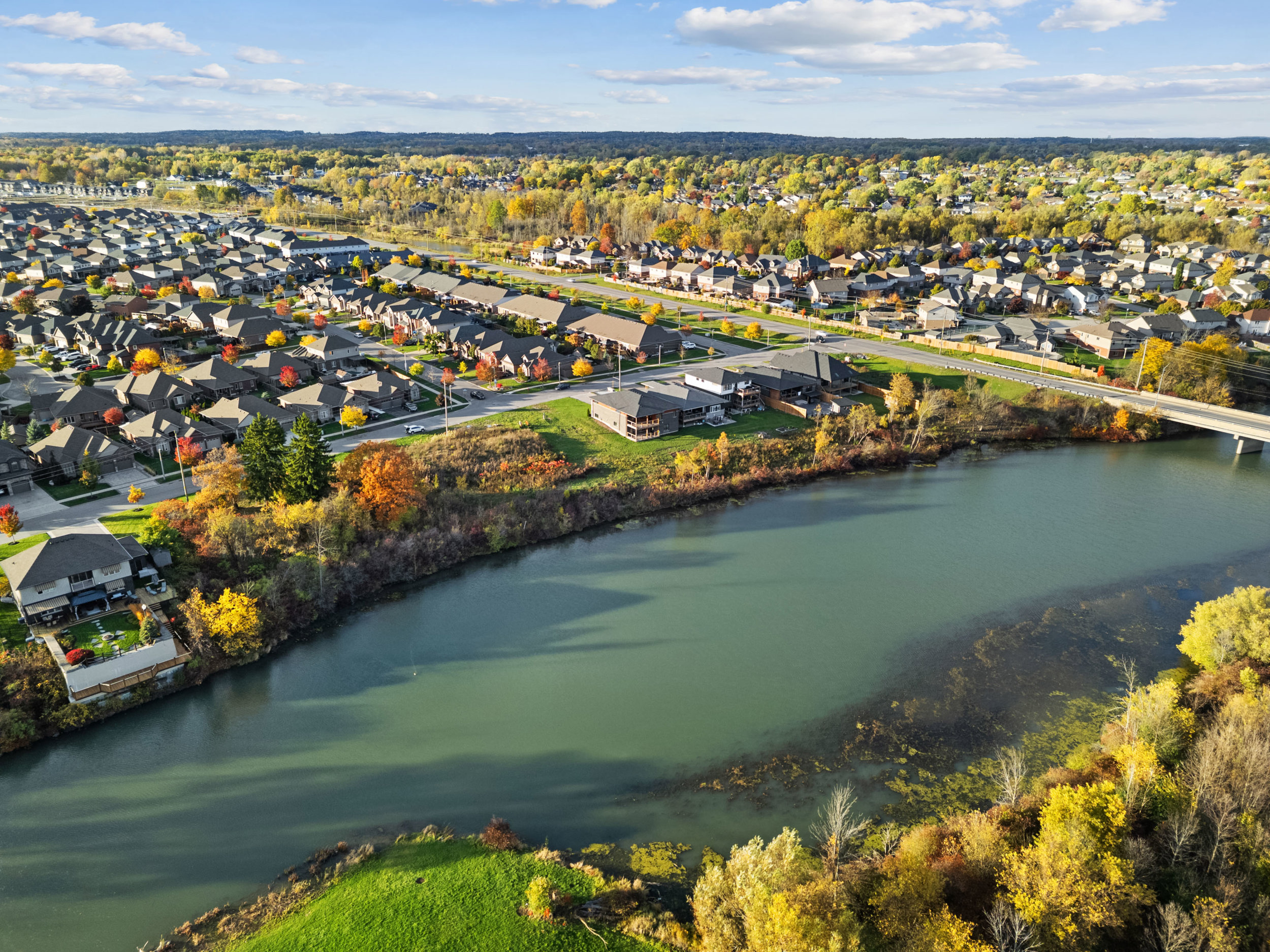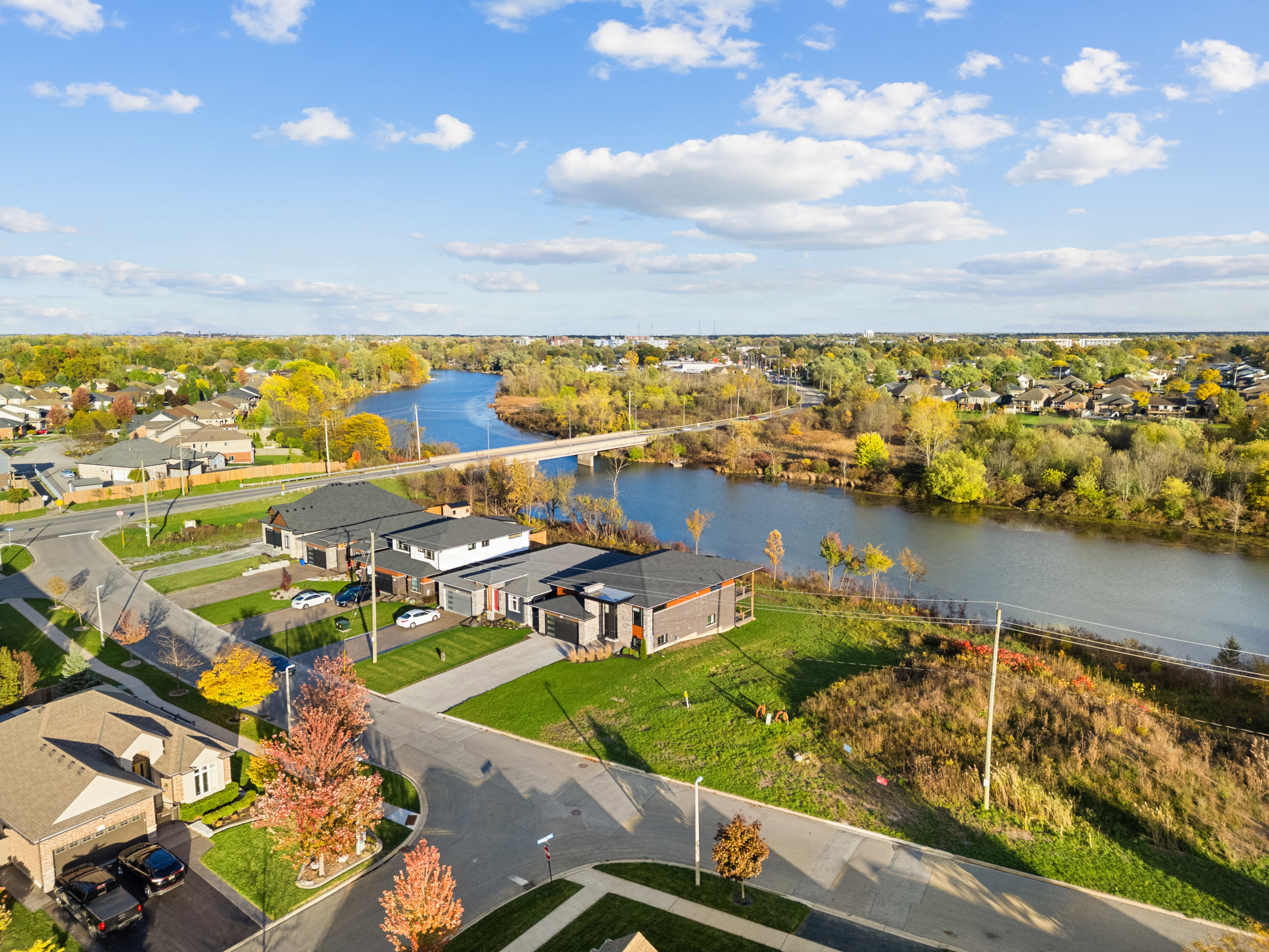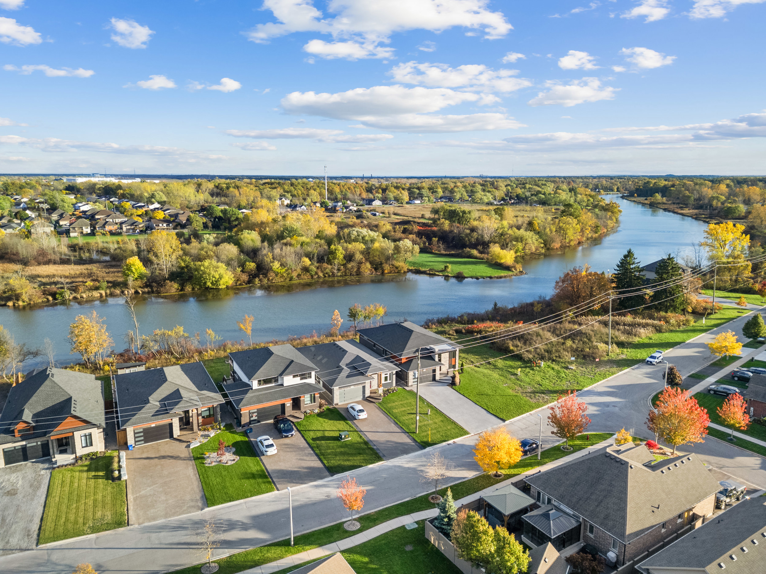 Nestled along the tranquil Welland River, the main floor features a custom kitchen with a quartz island and a stunning great room with a wall-mounted fireplace, seamlessly flowing to a covered deck overlooking the extraordinary riverbend view. The spa-inspired primary ensuite includes a spacious walk-in tile and glass shower and a freestanding soaker tub, providing the perfect retreat.