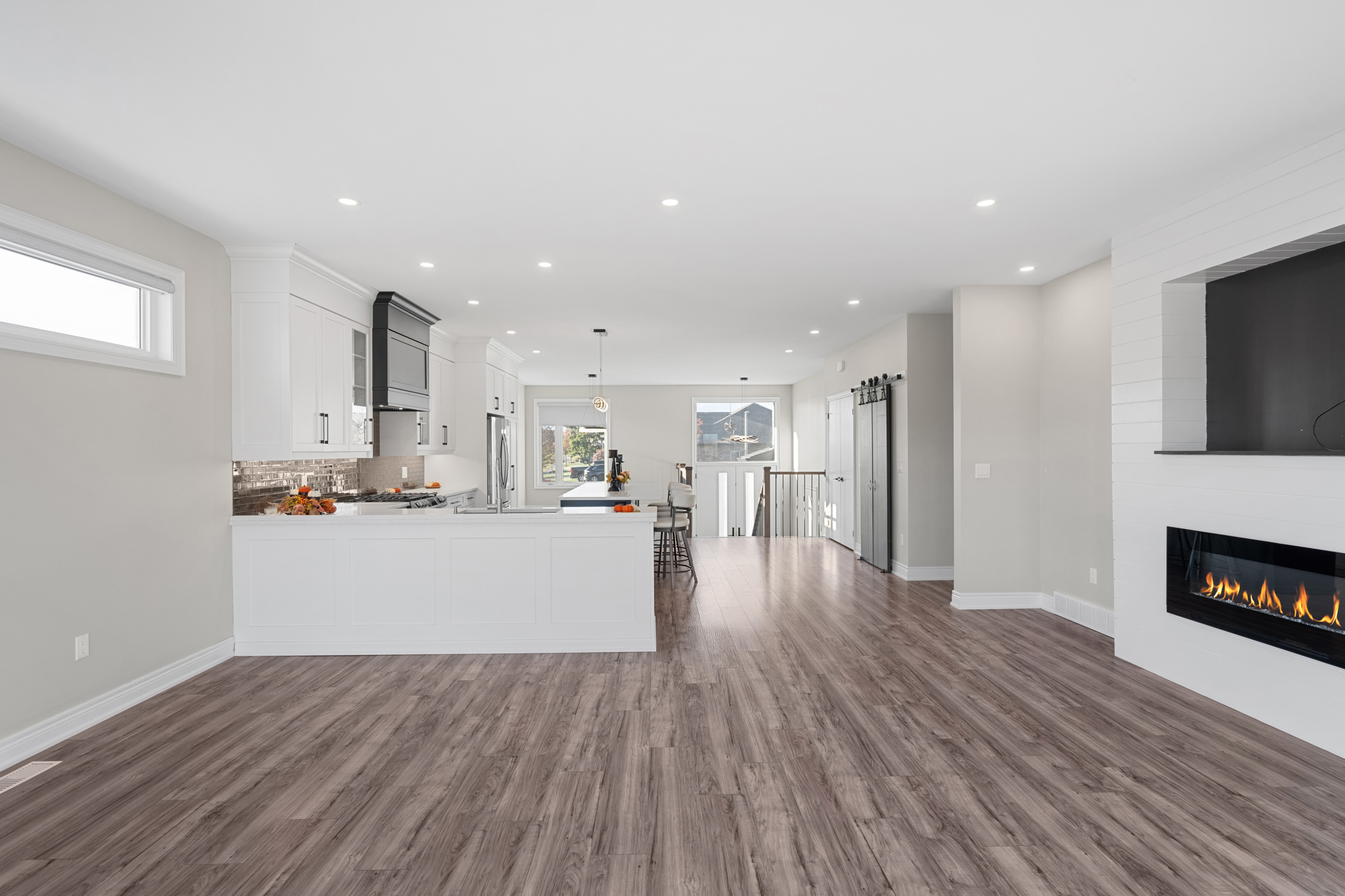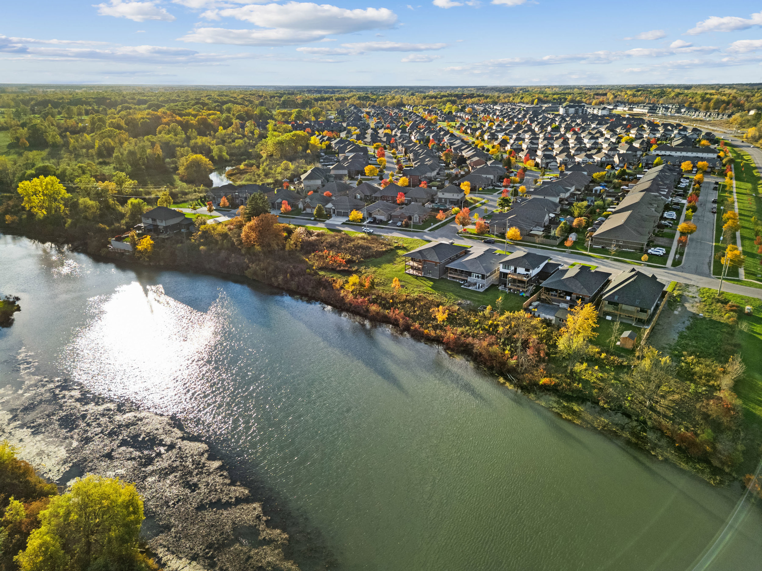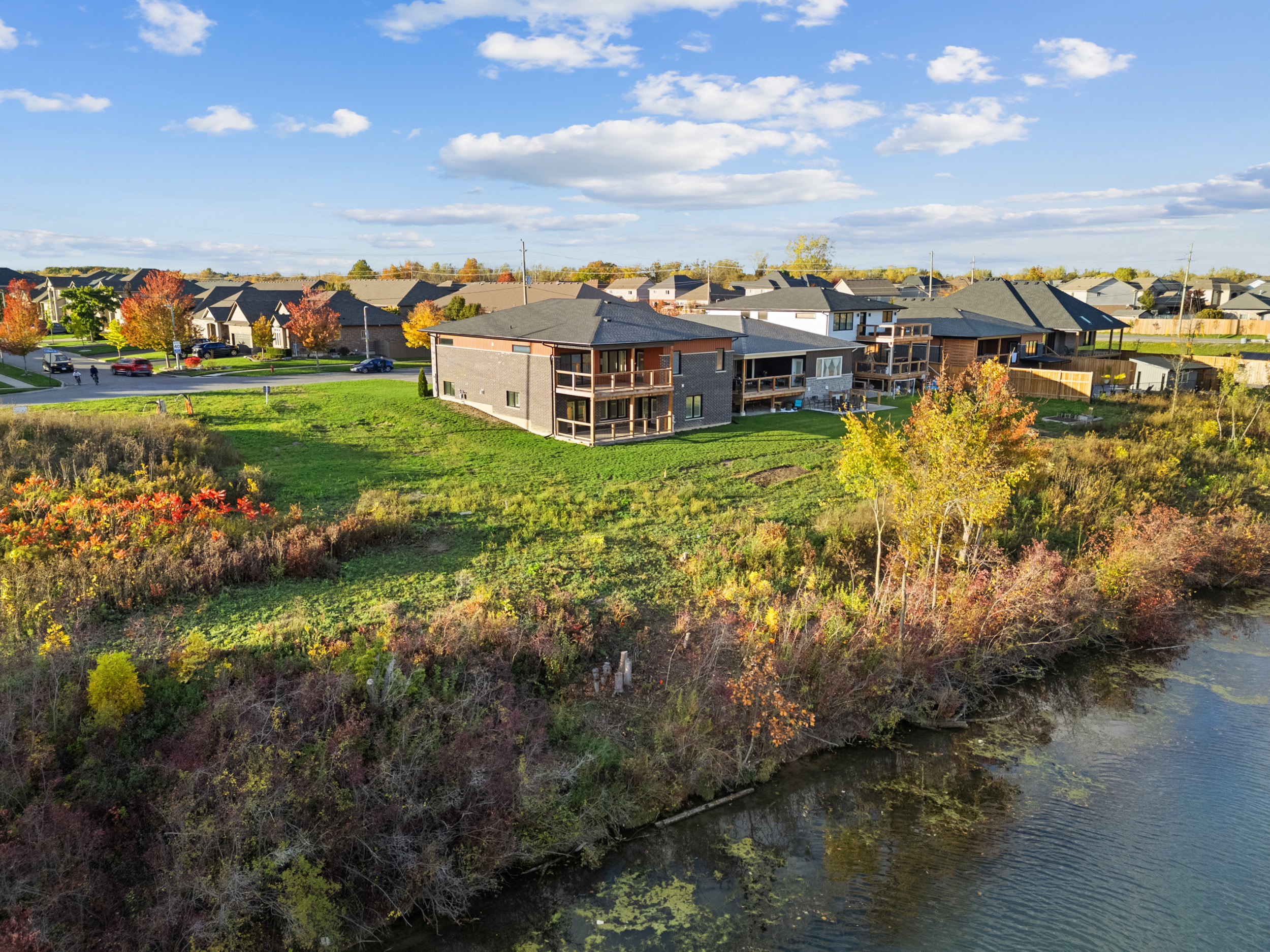 Nestled along the tranquil Welland River, the main floor features a custom kitchen with a quartz island and a stunning great room with a wall-mounted fireplace, seamlessly flowing to a covered deck overlooking the extraordinary riverbend view. The spa-inspired primary ensuite includes a spacious walk-in tile and glass shower and a freestanding soaker tub, providing the perfect retreat.