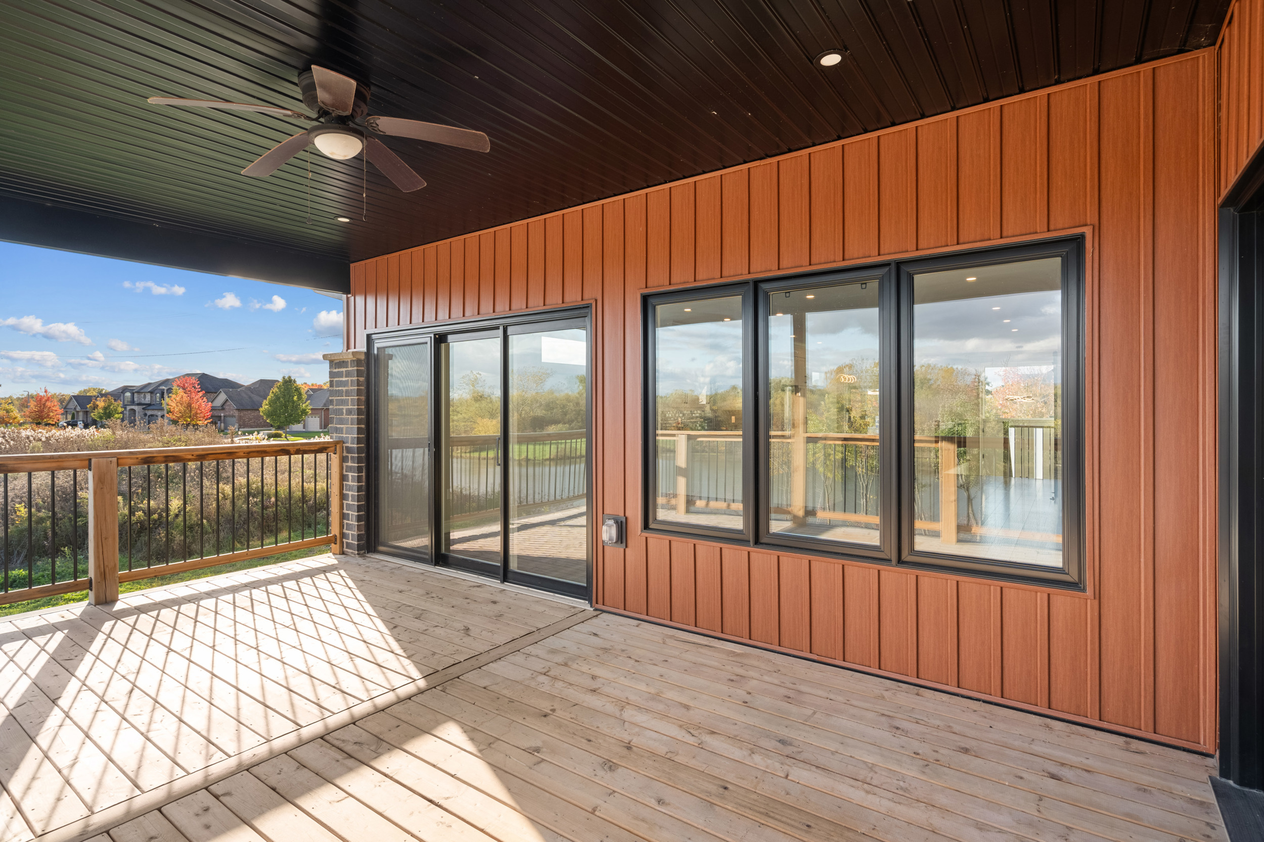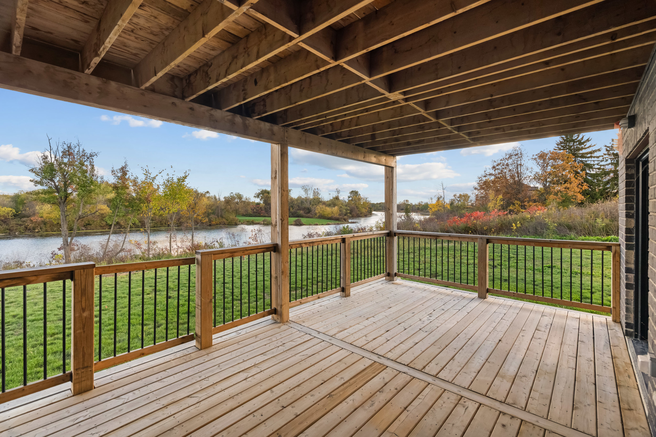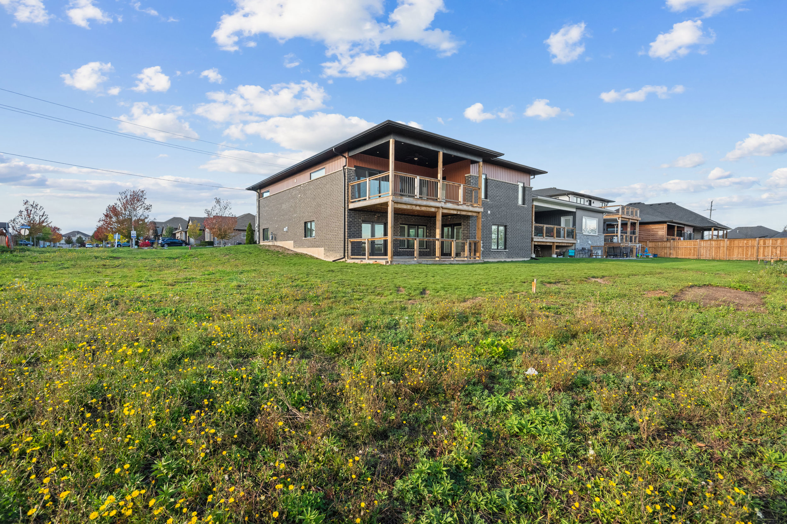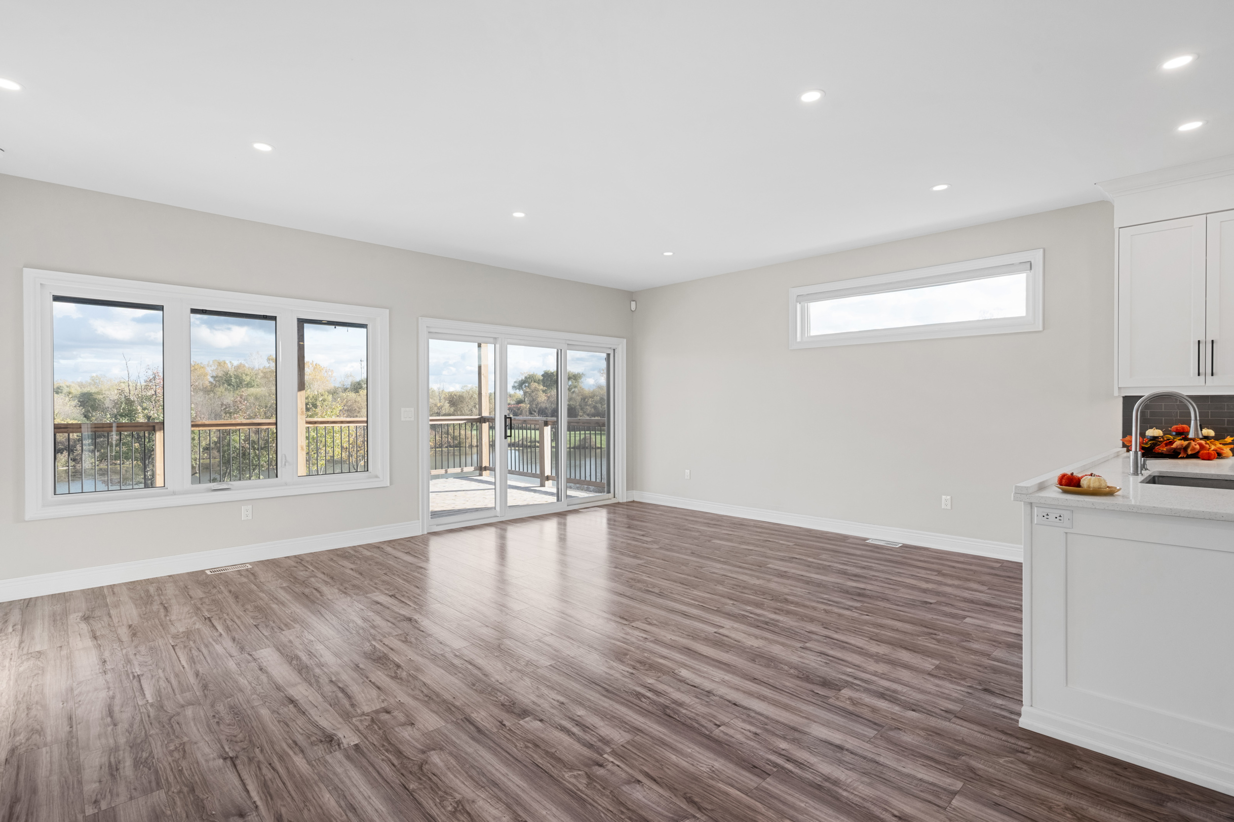 The lower level presents a self-contained living area with a full kitchen, two bedrooms, a 3-piece bath, and a large recreation space with private walkout access to the waterfront patio. With elegant finishes throughout and thoughtfully designed spaces, this home blends modern style with a serene waterfront setting, ideal for two-family living. The outdoor patio and deck measure 21′-8″ x 11′-3″, creating inviting spaces for relaxation and entertaining.