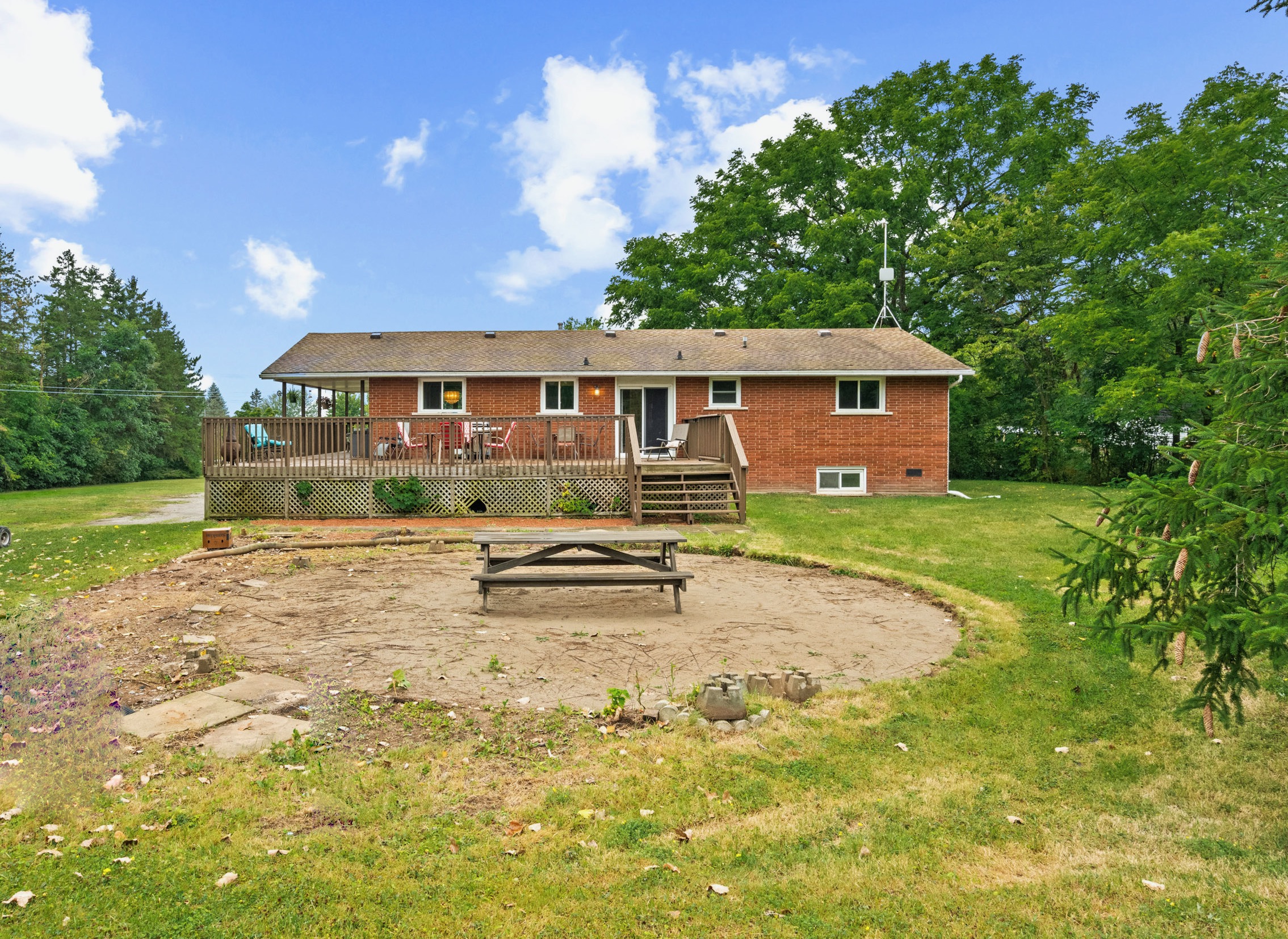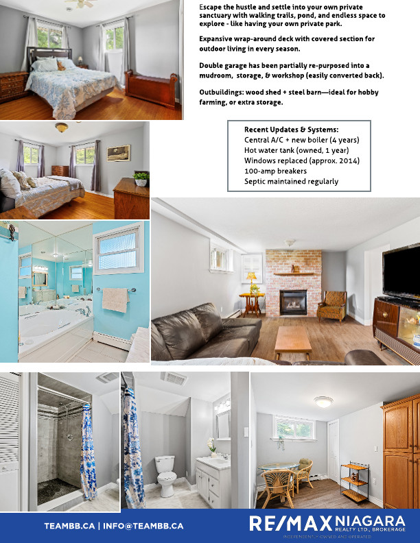 Escape to the country with this beautifully updated all-brick bi-level home set on six picturesque acres featuring a scenic pond, wooded trails, and a wrap-around deck with a covered section for year-round outdoor enjoyment. The garage has been partially converted into a versatile mudroom and workshop but can easily be restored to a full double garage.